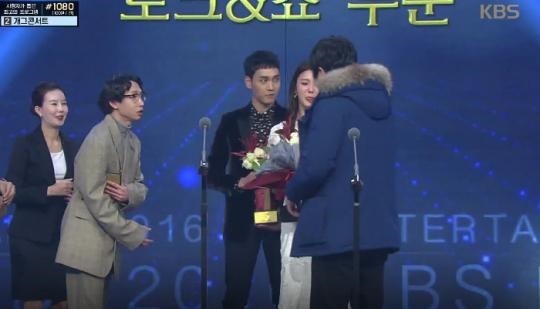 '2016 KBS 연예대상 시상식'에서 엄현경이 '해피투게더3'로 토크&쇼 부문 신인상을 받자, 돌연 무대위로 뛰쳐 올라가 '현경이 잘 좀 해주세요'라는 돌발상황과 발언을 하기도 했습니다.