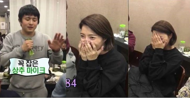 회식 자리에서 술김에 기안84가 엄현경에게 고백하는 장면. 엄현경은 당황하고 볼이 빨게지고....