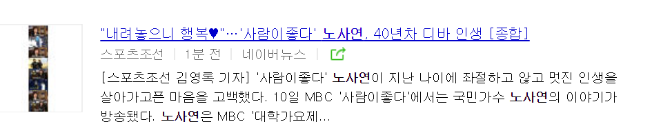10일 사람이 좋다에는 노사연의 이야기가 방송되며 많은 화제가 되고 있네요.