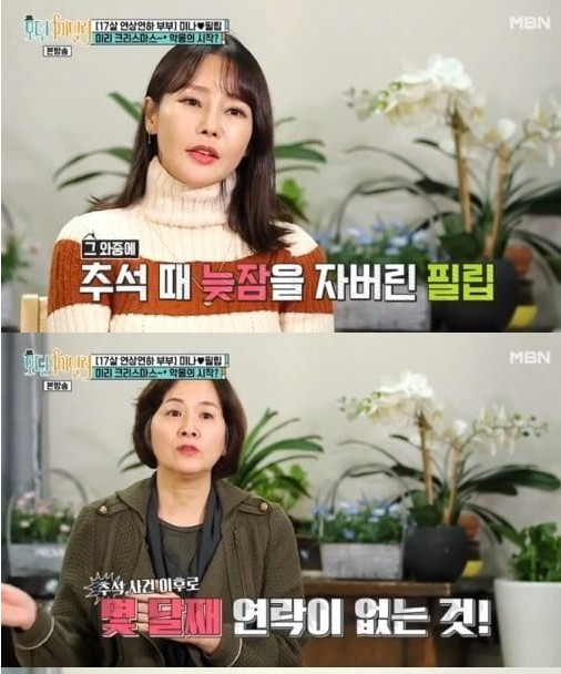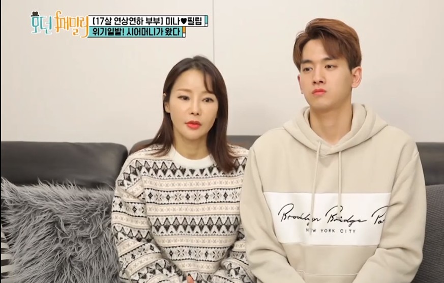 한편 필립과 미나의 나이차는 17살 차이로 미나가 연상인데요, 가수 미나는 최근 MBN '모던패밀리'에서 시어머니와의 관계에서 힘들어하는 모습을 보이고 있습니다.