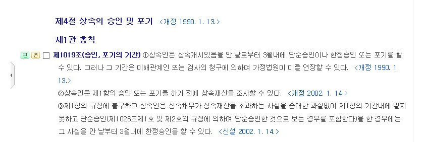 민법 제1019조에서는 이 기한을 이해관계인 또는 검사의 청구에 의하여 가정법원이 연장할 수 있음을 규정하고 있습니다. 그리고 상속인이 채무가 재산을 초과한 사실을 중대한 과실없이 3개월 이내에 알지 못하고 당순승인한 경우 그 사실을 안 날로부터 3개월 이내에 한정승인할 수 있습니다.