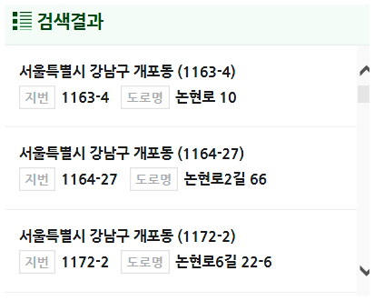 다만 구체적인 부동산을 조회해 보고 싶으시다면 지도상의 정확한 위치나 해당 부동산의 주소를 알고 계셔야 해요. 물론 이 주소를 찾아보는 것은 어렵지 않게 하실 수 있습니다. 상세정보를 살펴보시면 우측 하단에 해당 구역 부동산들의 주소가 나타나거든요.