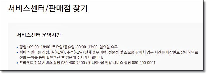 고객센터 영업시간은 평일 오전 9시부터 오후 6시까지 운영되며 토요일과 공휴일은 오후 1시가지 영업됩니다. 소모품 판매처의 업무 시간은 매장마다 조금씩 차이가 있으니 방문하기 전 전화해서 물어보시기 바랍니다.