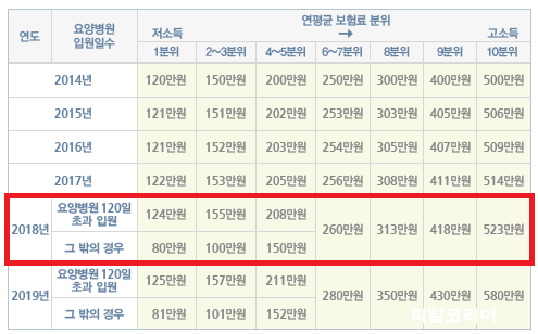 소득 수준은 가입자 연평균 보험료에 따라 1 분위부터 고소득자인 10 분위까지 구분하며, 소득 수준의 경우 다음 해 8월에 결정이 됩니다. 또한 소득 수준 결정 전까지는 10 분위인 최고 금액 580만 원을 우선 적용하여 초과분에 대해 환급이 됩니다.