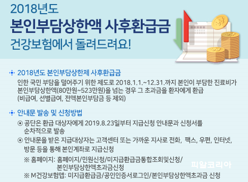 현재 돌려드리는 내용은 2018년 1월 1일부터 12월 31일까지 부담한 내용 중 기준금액인 80만 원에서 523만 원을 넘은 경우에 해당되며, 지급 대상자에게는 안내문을 발송하고 있다는 내용입니다.