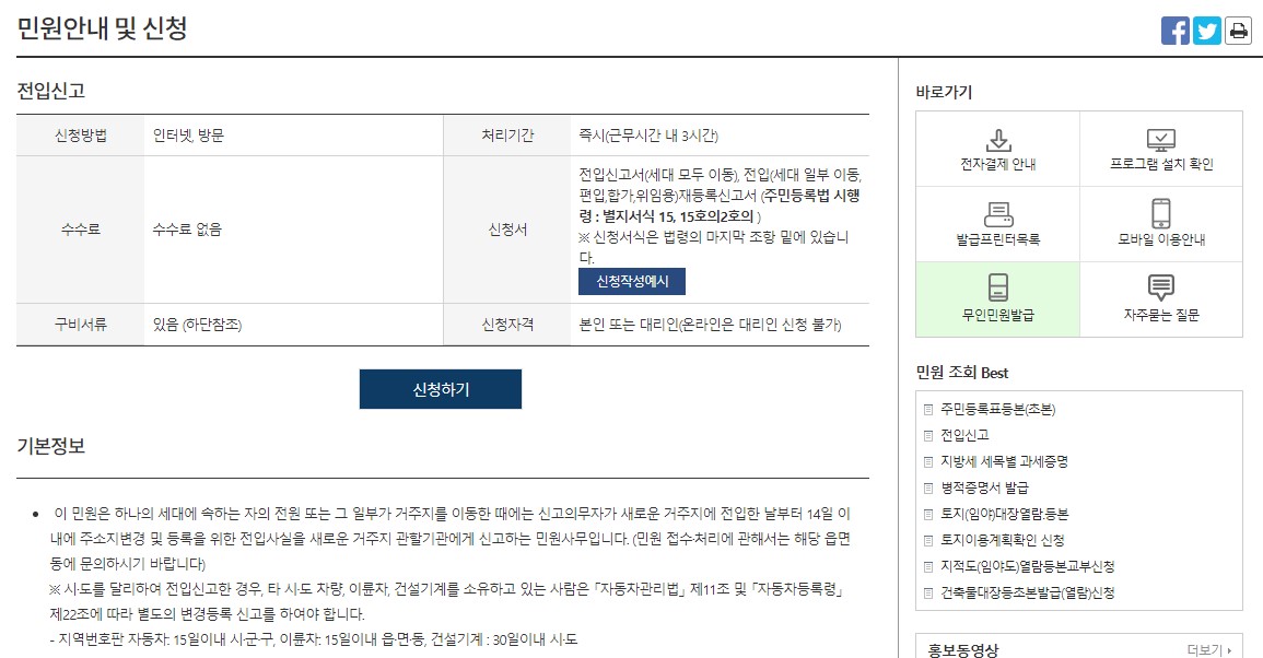 요즘처럼 인터넷이 잘 발달되어있는 경우에는 직접 방문하시기보다 전입신고 필요서류 없이 집에서 인터넷으로 신고하는 것이 좋습니다.