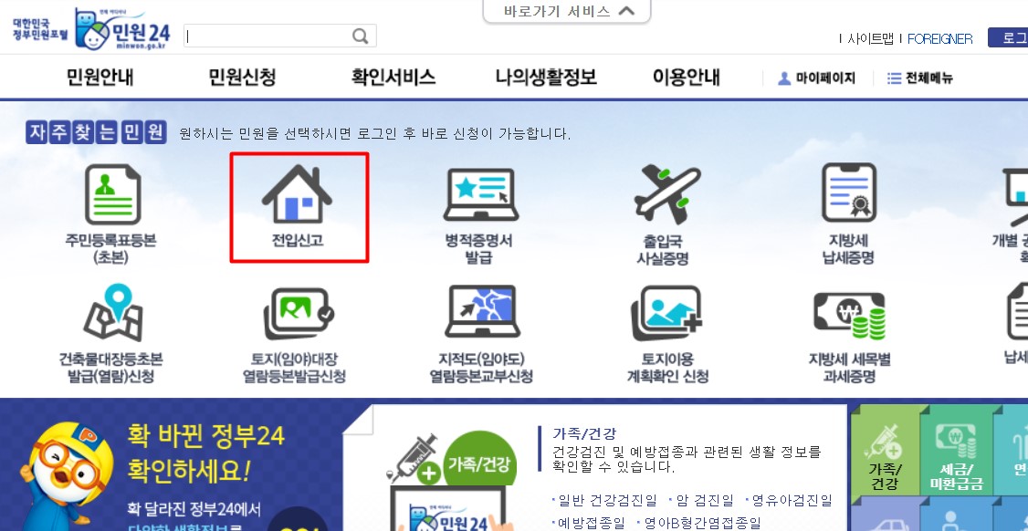 인터넷 전입신고 과정에 로그인이 필요하므로 회원이 되지 않았다면 회원이 된 후 전입신고 필요서류인 공인인증서 등록을 하시면 됩니다.