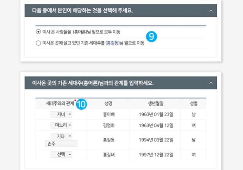 세대주 확인이 필요한 경우가 있는데, 세대주가 아닌 세대원이 신청하면 세대주를 포함하여 이사하는 경우, 세대주 변경이 있는 경우, 이사온 곳에 기존에 살고있는 세대주가 있는 경우는 세대주 확인이 필요하고 세대주 확인은 세대주의 공인인증서로 확인하거나 새로운 거주지 주민센터에 방문하여 확인할 수 있습니다.