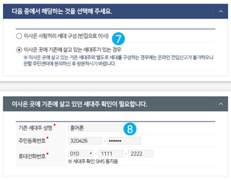 세대주 확인이 필요한 경우가 있는데, 세대주가 아닌 세대원이 신청하면 세대주를 포함하여 이사하는 경우, 세대주 변경이 있는 경우, 이사온 곳에 기존에 살고있는 세대주가 있는 경우는 세대주 확인이 필요하고 세대주 확인은 세대주의 공인인증서로 확인하거나 새로운 거주지 주민센터에 방문하여 확인할 수 있습니다.