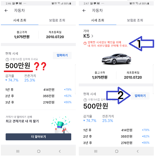 생각보다, 차 값이 떨어지는 것이 눈에 보이네요.